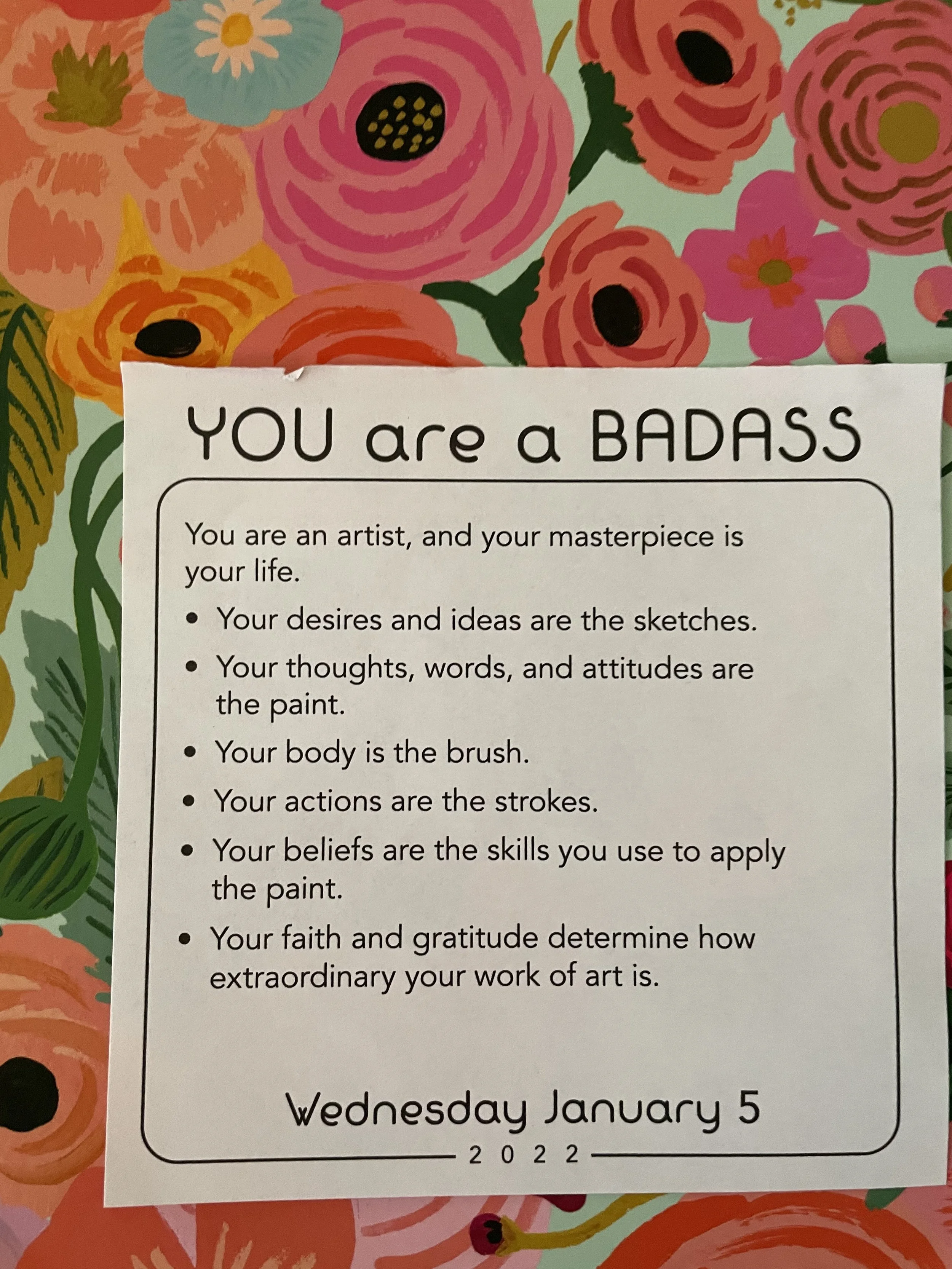 This is wisdom straight from my Badass 2022 desk flip calendar. I love everything about this. I can relate. It is how I view life.