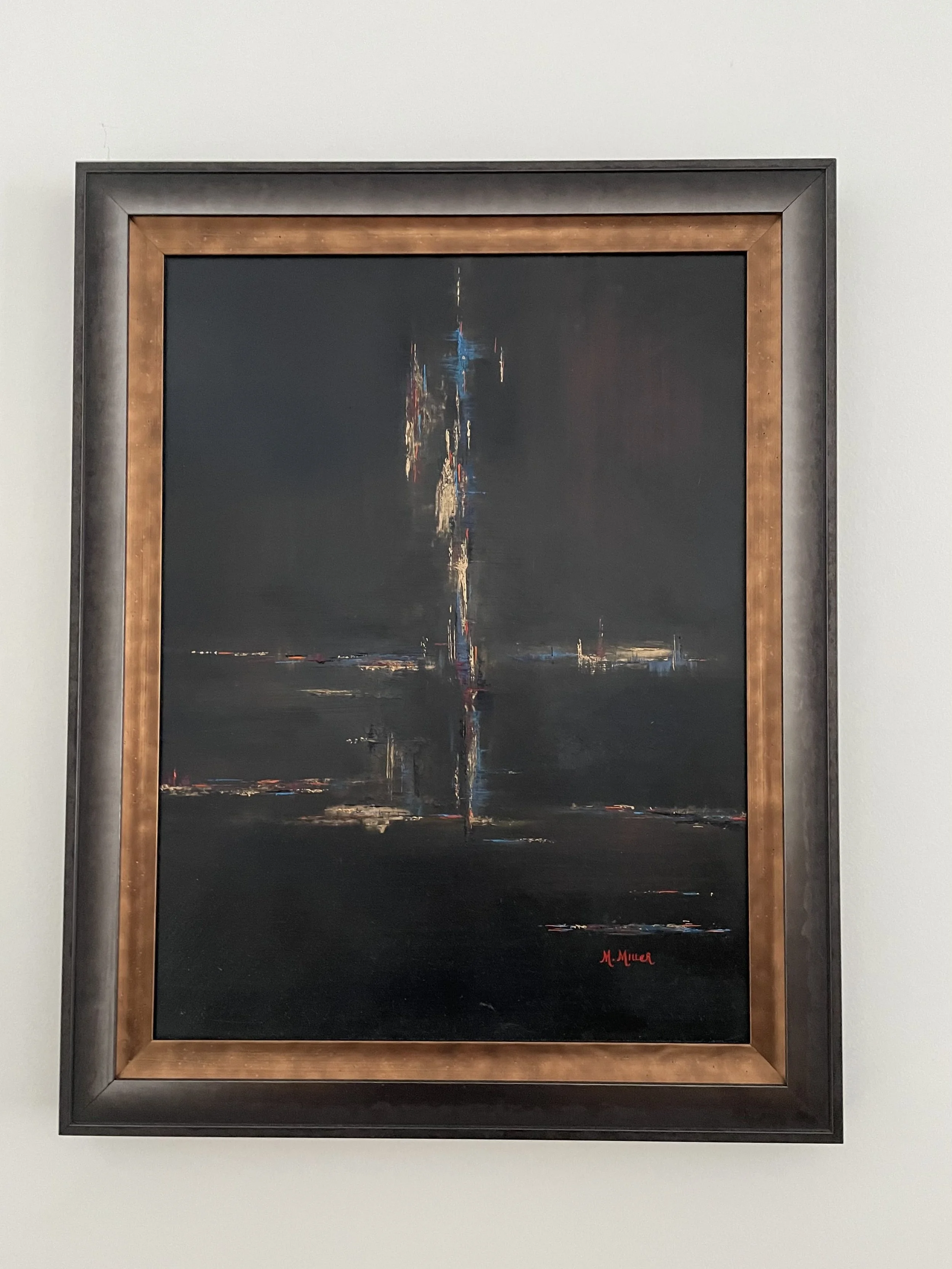 I love it when my pieces get framed and make it to the wall. This is a very special piece to me. I t represents our relationship with God and others. It is painted in the style of the Dutch masters who painted in similar colors—dark and light.
