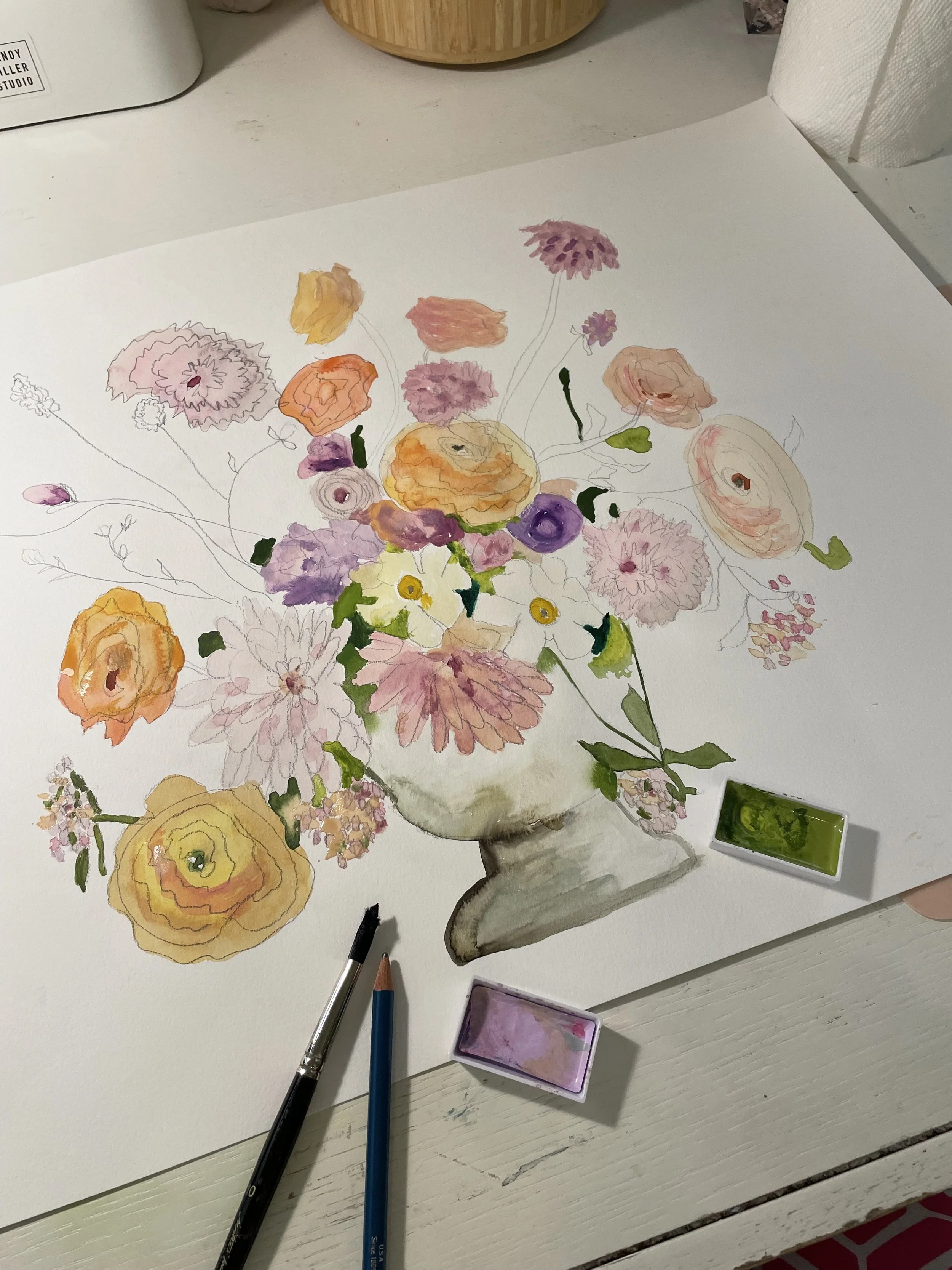 This is another of my latest floral pieces. In this first photo it was unfinished. September 13, 2023 by Mandy Miller Her it is finished.