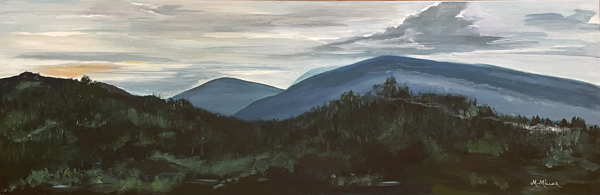 These pieces are in acrylic and watercolor. I am a self taught artist, so I paint how I want to. I paint quickly and in one sitting, especially I did with these pieces. Many artists work in phases on a piece. The only time I do that is on a floral I have sketched a bit first and then I might spread my time out filling the sketch in with color. These pieces Iām sure break all of the skilled watercolorist handbook, but I have not read it, so I am ok with how these turned out. The top piece is 10x30 if I remember correctly. The next two watercolors are 24x36 and the last watercolor is a 16x20.